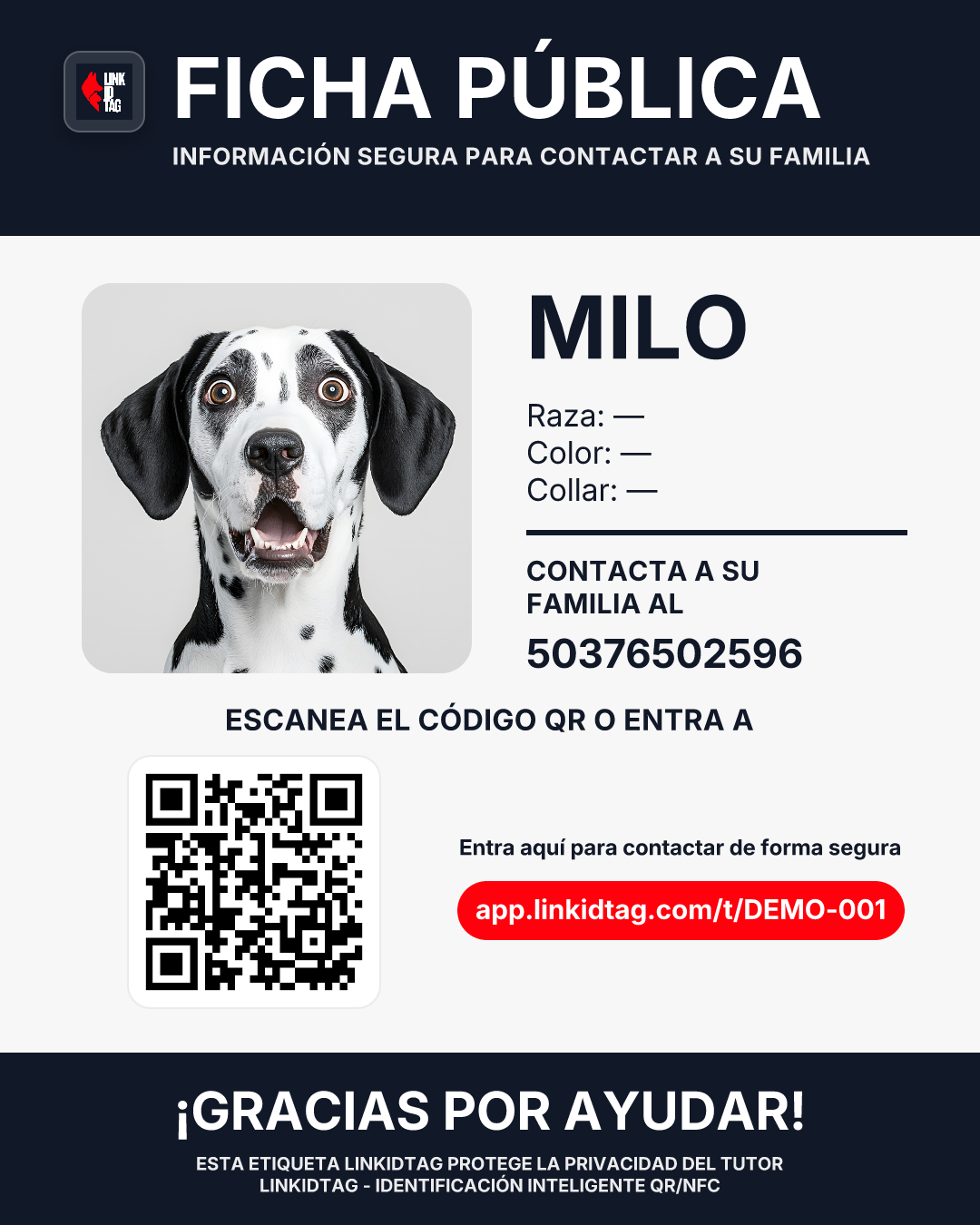 Esta ficha es un apoyo para la familia de Milo y para quienes lo ayudan si se pierde. La información no reemplaza la valoración de un médico veterinario.